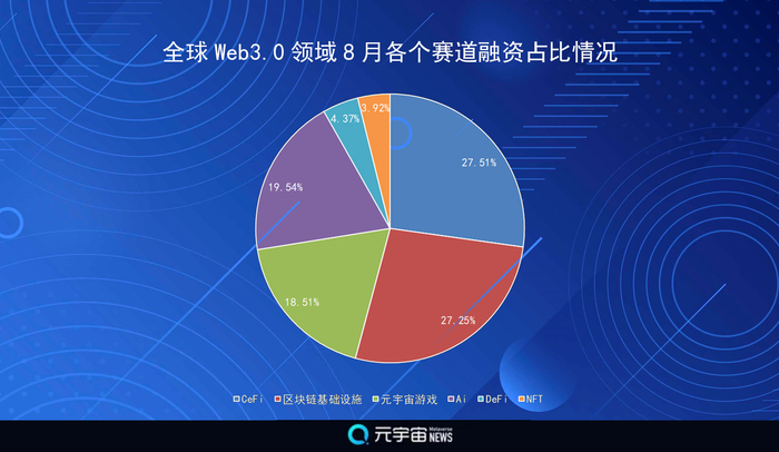 如上图所示,从细分赛道来看,CeFi赛道6个项目共获得1.07亿美元融资,成为8月份获得融资最多的赛道。