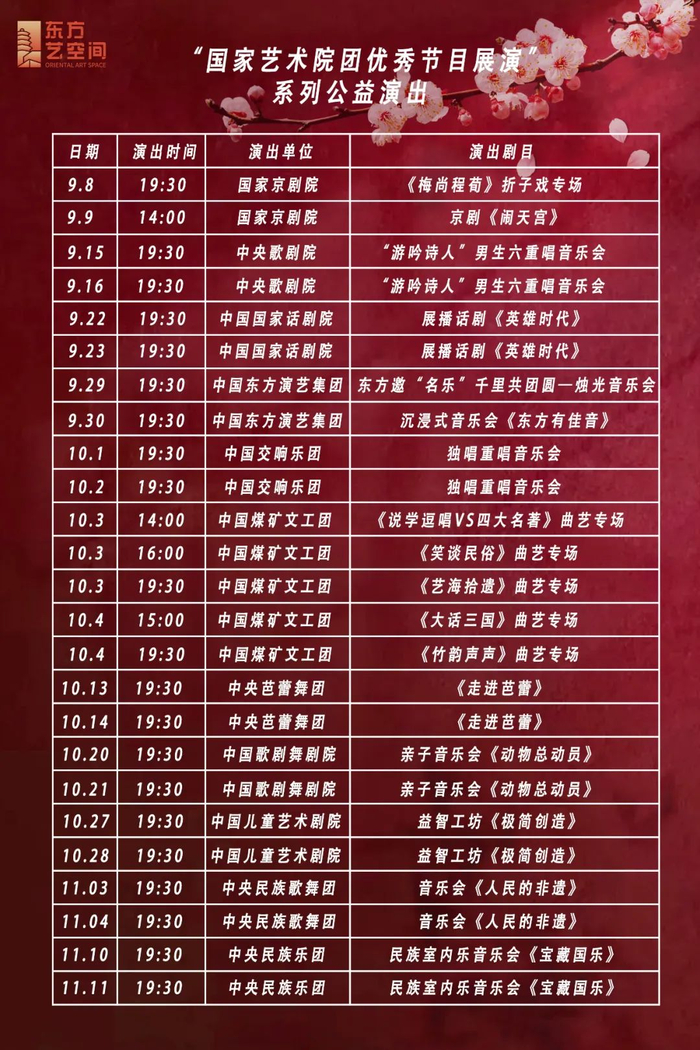 自9月8日开始将持续至11月中旬,每周末都会有各国家艺术院团优秀节目成果呈现。