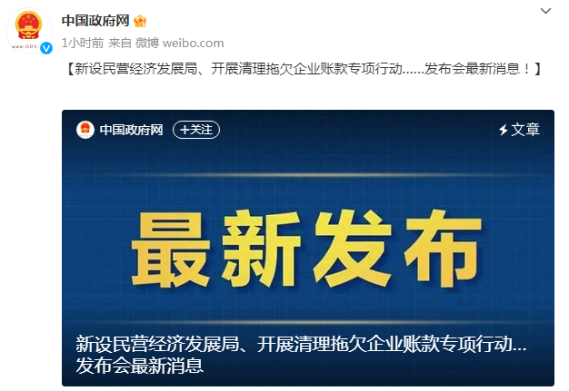 新设民营经济发展局、开展清理拖欠企业账款专项行动…发布会最新消息