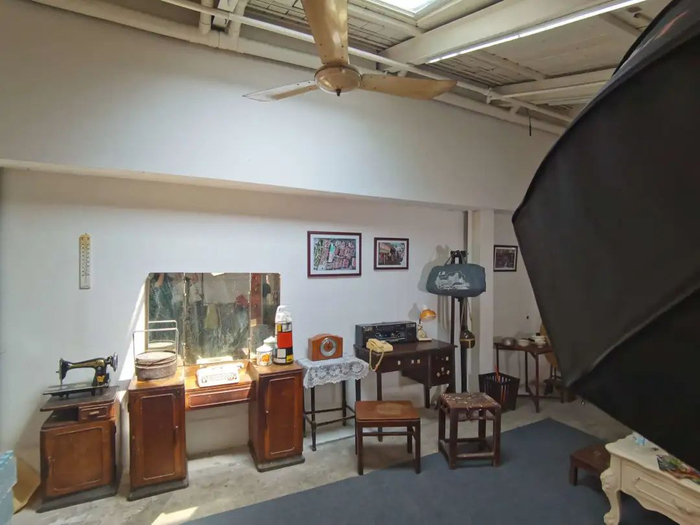 一早,居民郭瑾拉着在这里居住了50年的老邻居徐阿姨来到“幸福76照相馆”拍照留影。而这里的陈设都是来自76街坊旧改居民家里的老物件。对着一套家具,郭女士感触地说道:“这是我们家的老家具,1938年买的,我爷爷当时用的。”