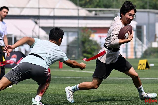这次友谊赛上,成外的同学们还专门请来了成都熊猫人美式橄榄球俱乐部的教练赵一权,后者曾作为中国大学生美式橄榄球队的一员参加过两届世界大学生美式橄榄球锦标赛。这次受邀参加蓉沪两地同学们的友谊赛,赵一权也将9月3日的活动分为了两个部分,一是带领参赛队员进行了训练并给予专业层面的指导,二是以裁判的身份参与了双方的友谊赛。在接受红星新闻记者采访时,赵一权也表示:“成都的橄榄球运动发展在西南地区算是比较早,但相对全国来说起步还是较晚。尤其是腰旗橄榄球,都是最近两年才开始发展的,但这并没有动摇我们在成都推进橄榄球运动的信心。橄榄球强调团队合作,注重策略和技巧,是一项既考验脑力又考验体力的运动。我们相信,只要尝试过和体验过,人们就能真正了解和感受到橄榄球的魅力。比如这次比赛由成外的同学自发组织,一些女生也积极投身到推广橄榄球运动中,她们的故事也证明橄榄球运动可以培养一个人的团队精神、领导力、毅力和自信心。”