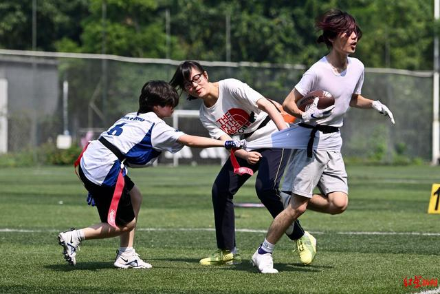 这其实是成都外国语学校的同学自发组织的橄榄球队成立以来,第一次迎来“外战”——他们邀请了来自上海的汇点美高橄榄球队来蓉进行交流比赛,后者曾夺得过2022年NFL Flag腰旗橄榄球秋季赛华东赛区男子组U18亚军。而这场蓉沪高中之间的校际友谊赛,发起、策划、组织、执行都基本是由成外的学生们自己在完成。成都外国语学校国际部11年级的同学杨雅晴是球队的主要负责人,她对红星新闻记者表示:“腰旗橄榄球是2025年成都世运会的正式比赛项目,我们球队男女生差不多各占了一半的比例,也是希望通过创建学校球队、社团,组织相关的比赛,能让更多的女性参与到这项运动中来,让她们能有展示自我、释放自己的舞台。每一个人,无论男女,都有权在他们选择的领域中尽情发挥、尽情展现。”