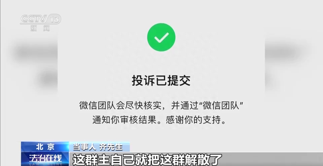 当事人 齐先生:民警问我是不是点开了什么风险网页,让千万别输入自己的信息,我就没有再下载这个app,然后把这个微信群举报了,没一会儿我看这个群主就把群解散了。