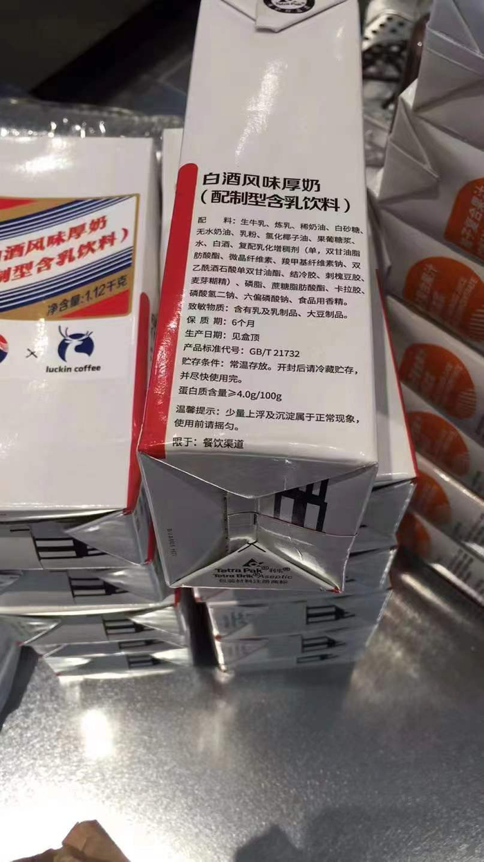 据悉,厚奶是一种牛奶新品类,可用于调配咖啡和奶茶,能提升饮品风味、调和出更醇厚的压舌感,增加整杯产品的价值感。因此,用户在购买酱香拿铁时,看不到服务员往咖啡杯里滴茅台酒的情景,加的只是含酒的厚奶。