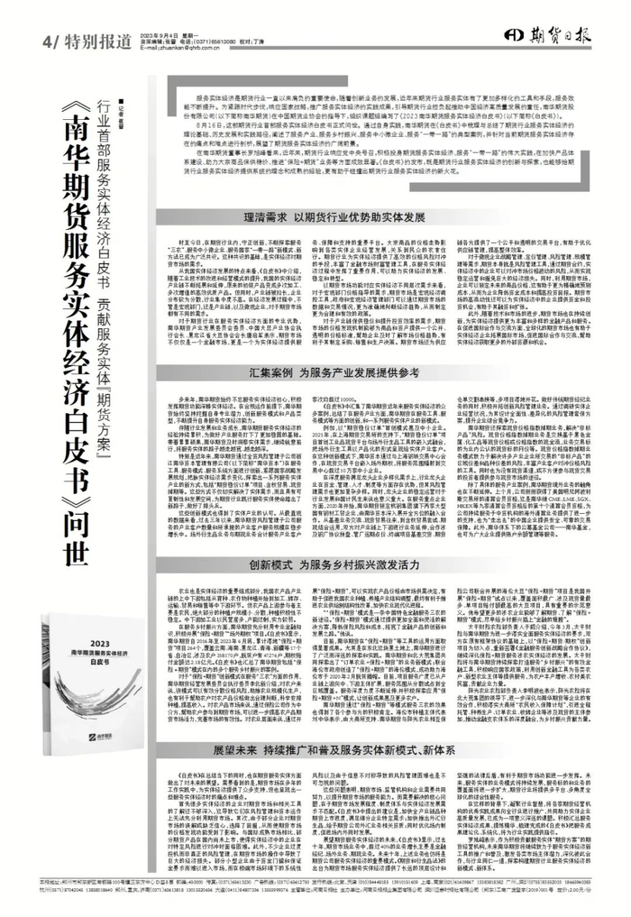 服务实体经济是期货行业一直以来肩负的重要使命,随着创新业务的发展,近年来期货行业服务实体有了更加多样化的工具和手段,服务效能不断提升。为紧跟时代步伐,响应国家战略,推广服务实体经济的实践成果,引导期货行业担负起推动中国经济高质量发展的重任,南华期货股份有限公司(以下简称南华期货)在中国期货业协会的指导下,组织课题组编写了《2023南华期货服务实体经济白皮书》(以下简称《白皮书》)。