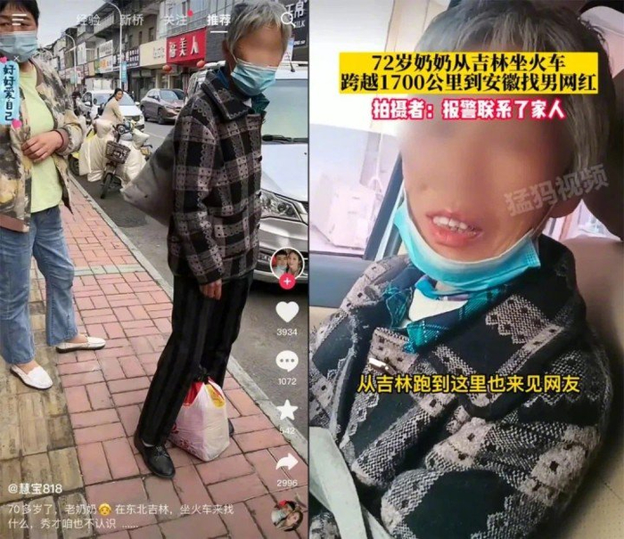 我们听说过“千里追星”,但在这位主播的头上,我们却见到了七旬奶奶“千里追秀才”的场景。今年5月,一位年过70的吉林老太,乘坐火车前往安徽蒙城,想要见见这位“男网友”,却不知他住哪,最后,这位老太在当地派出所和救助站的帮助下被劝返,在被劝说的过程中老太还说,“上岁数就不兴见网友了?”