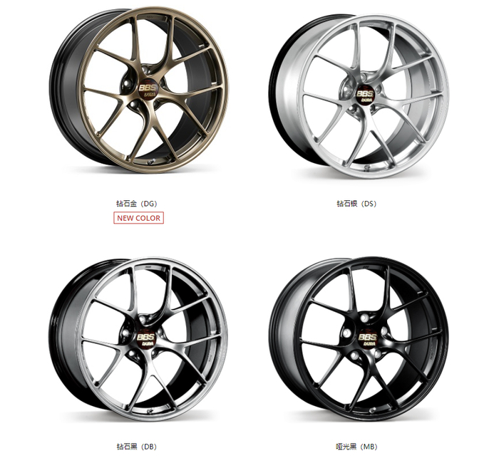 这款超硬铝的单片式锻造轮圈,采用简单的5Y幅设计,也是BBS最经典的3种颜色: