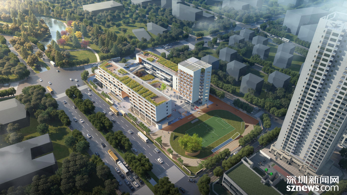 学校介绍:深圳技术大学附属学校(光明)以“脉络长延 书韵庭院”为设计理念,通过对岭南建筑特色的提取,引入“庭院骑楼”“长廊冷巷”元素,有效解决教室通风采光问题,将古板交通空间变成灵活多彩纽带,建成后,有利于保障片区适龄儿童的就学需求。