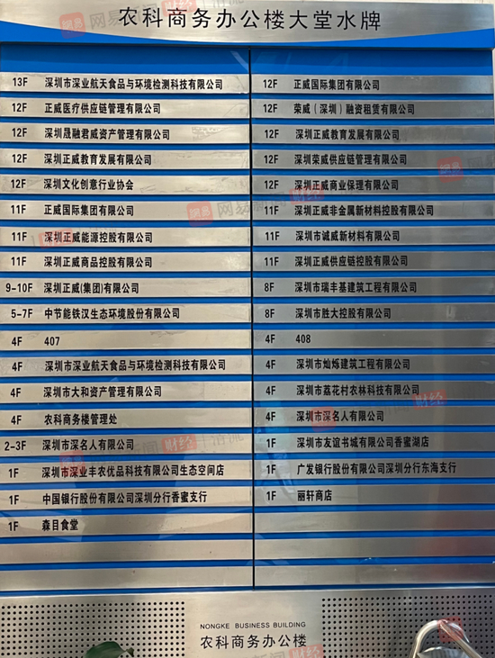 与这些公开的宣传相比,位于深圳农科商务办公楼的诸多“正威系”公司则显得低调而神秘。该大楼的大堂水牌显示,这栋小型办公楼的9到12楼,是16家正威系公司的办公住址。但清流工作室的调查显示,这远远不是正威的全貌——正威系还有大量的贸易公司乃至地产公司,将注册地址放在农科商务办公楼的9到12楼。正威系注册的公司数量之大,难有一个确切的数字。这些海量的贸易公司,究竟用来做什么?
