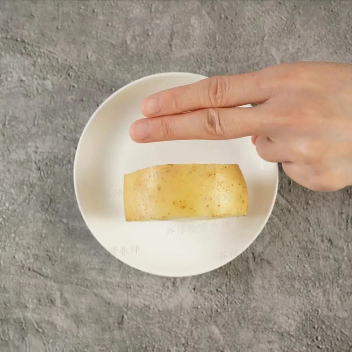 蒸薯类的话,地瓜/芋头/紫薯/铁棍山药/栗面南瓜都可以,完全作为一顿的主食,可以吃到 150~200 克左右,参考如下图。另外作为一餐,还是要搭配充足蔬菜和适量蛋白,即大概 1.5~2 拳头蔬菜,1 拳头蛋白。