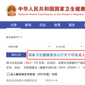 最后,强烈推荐建议你去国家卫健委的官方网站下载这个指南,在搜索框里输入“成人糖尿病食养指南 2023”出来的第一个就是!