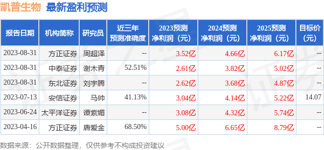 最新盈利预测明细如下: