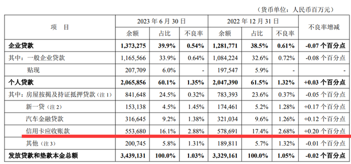 2023年6月末,平安银行个人贷款不良率1.35%,较上年末上升0.03个百分点,其中“新一贷”和信用卡等业务不良率有所上升。平安银行表示,其持续提高对贷前政策的检视频率,严格把控客户准入,并积极拓宽催清收渠道,加大对不良贷款的处置力度。始终严格控制新户准入,做实对客户还款能力和还款意愿的评审,新户质量整体保持平稳。其中,信用卡应收账款受宏观环境影响,以及2021年四季度应监管要求调整信用卡逾期认定标准影响,新户逾期率有所上升,但本行已主动优化授信方案,增加优质额度投放,加大贷后催收力度。