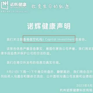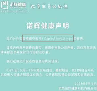 “以后我们对没有任何来源的(做空)报告不再回应。”2023年8月21日下午,诺辉健康(06606.HK)董事长兼CEO朱叶青在2023年度中期业绩媒体沟通会上,就一份之前流传甚广的针对诺辉健康的做空报告如是说道。