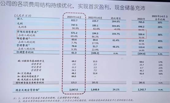 研发费用虽然同比2022年也有大幅增长,但在收入占比上是2022年同期的零头。