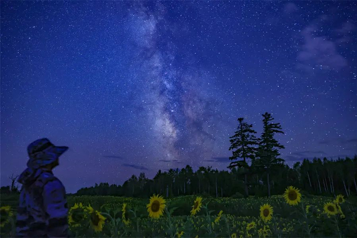 来到长白山万达国际度假区工作后,我会在晚上只身一人深入森林,架起机器拍摄星空,群星璀璨,银河绚烂,犹如整个宇宙在为我闪烁。也经常在夏秋的夜晚,带着小伙伴去白桦公园观星,为他们做讲解做培训。