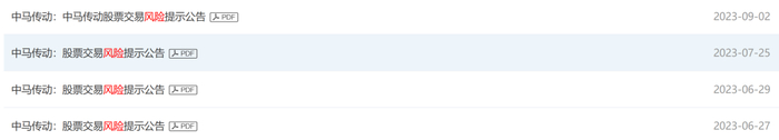 实际上,风险提示也是中马传动过去3个月公告的关键词。