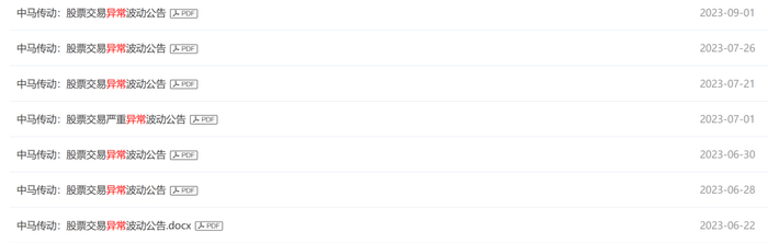 上周末(9月2日),中马传动收盘后发布风险提示公告。而前一交易日(9月1日),公司还发布了一份异动公告的内容。