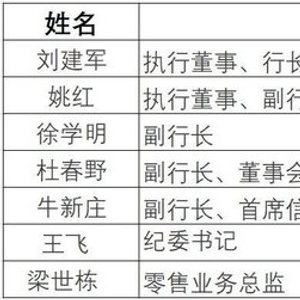 邮储银行公告显示,4月19日,因达到法定退休年龄,曲家文、张学文同时辞去副行长职务;同日,王飞出任纪委书记。5月29日,姚红兼任首席风险官,梁世栋出任零售业务总监。6月6日,牛新庄副行长的任职资格获国家金融监督管理总局核准。