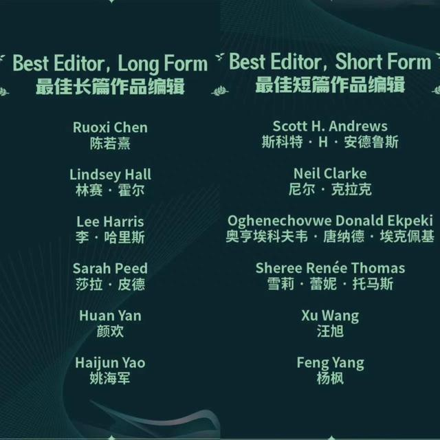 本届雨果奖“最佳长篇作品编辑”和“最佳短篇作品编辑”入围名单
