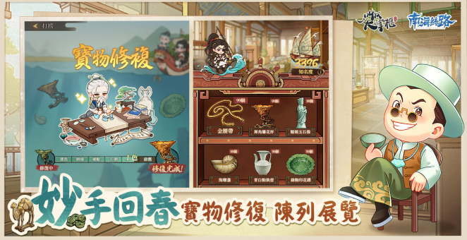 在游戏中,玩家不仅可以随着商路,重走海上丝绸之路;还可以巡航“打捞”宝物,并在博物司里,了解海上丝绸之路相关文物的知识。
