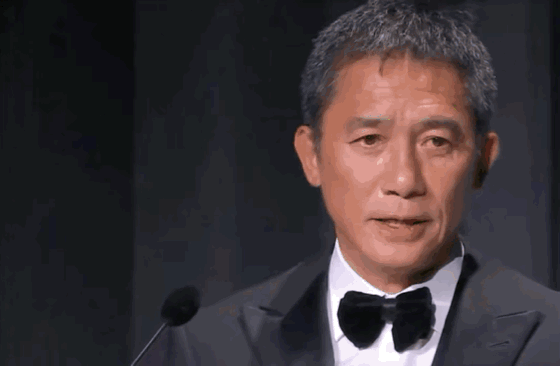 周日,威尼斯电影节颁奖典礼上,梁朝伟从李安手中接过终身成就金狮奖杯,在宣读致辞时动情落泪。