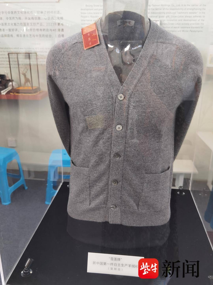 中国第一件羊绒衫长啥样?记者在服贸会上见到了“复制品”——老字号“雪莲”牌男士纯羊绒衫,经典开衫版型、灰色,现在看来也不落伍。