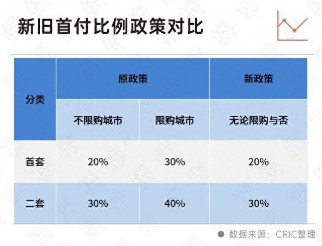 一是不再区分实施“限购”城市和不实施“限购”城市,首套住房和二套住房商业性个人住房贷款最低首付款比例政策下限统一为不低于20%和30%。