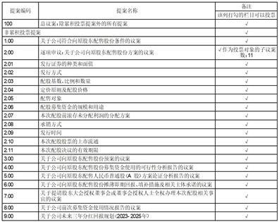2. 提案1至9项属于涉及影响中小投资者利益的重大事项,对中小投资者(单独或者合计持有上市公司5%以上股份的股东及公司董事、监事、高级管理人员以外的其他股东)的表决票单独计票,公司将根据计票结果进行公开披露。