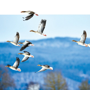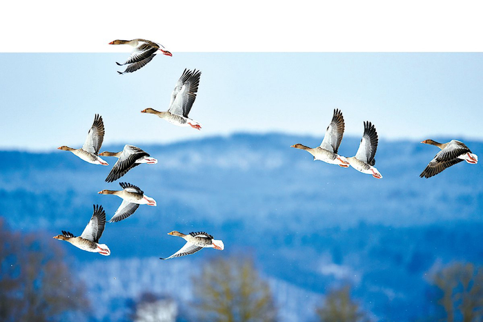 成群飞翔的灰雁