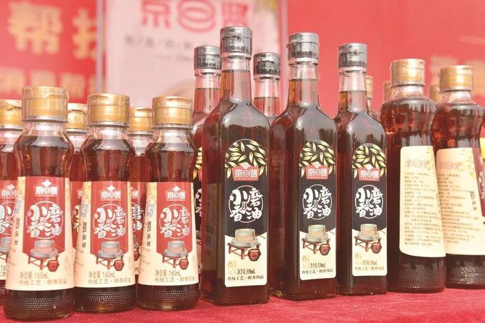 农副产品产销对接活动现场展示大名地方特色产品——小磨香油。