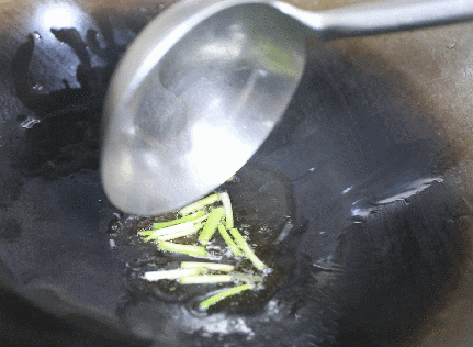 锅中放猪油,油热至透明将小葱切段放入油锅中炒出香味。