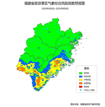 6-8日我省中南部部分地区仍有暴雨,较不适宜出游,我省大部 3A 级旅游景区气象综合风险指数整体较高,其中11个县、市(区)的16个景区气象综合风险达到4级(较高风险),31个县、市(区)的90个景区气象综合风险达到3级(中等风险)。广大游客需密切关注天气预报,采取有效措施规避风险,做好旅程安排。