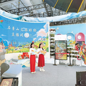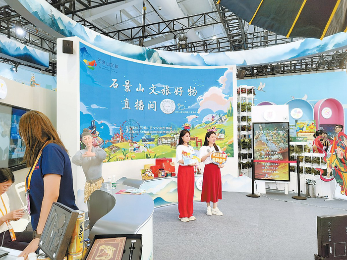 “接下来我们为大家带来的是法海寺壁画艺术馆门票……”9月4日下午,在石景山展区现场,由石景山文旅局联合中青旅甄选抖音直播平台开设的石景山文旅好物直播间正在直播。从餐饮、住宿、营地的优惠券到艺术馆门票,数十种产品涵盖了“吃住游娱购”全方位消费供给。工作人员介绍,该直播已累计吸引数万人观看。