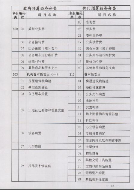 1.政府预算支出经济分类有关科目中“机关工资福利支出”、“机关商品和服务支出”、“机关资本性支出(一)”、“机关资本性支出(二)”等科目只反映行政单位和参公事业单位的支出,对参公以外其他事业单位的上述支出在“对事业单位经常性补助”科目(505类)和“对事业单位资本性补助”科目(506类)反映;原“预留”科目内容修改为“政府预算专用。”