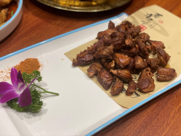 在一般的烧烤店里,大油边是比较常见的,但在这家却是用油炸的做法。这比烤多了一层酥脆,口感依然很扎实,蘸着辣椒面调料,是很下酒的一道菜。