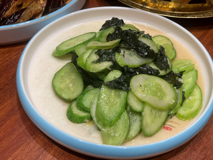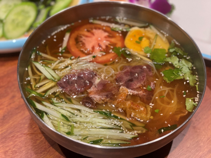 韩式快餐店,自然少不了冷面、拌饭,他家用的是白冷面,酸甜度刚好,而且面根根分明,不像有些店一上桌碗里的面就都粘在一起,口感也足够弹滑。