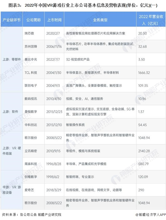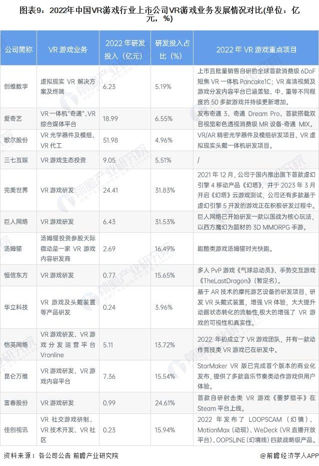 【最全】2023年中国VR游戏行业上市公司全方位对比(附业务布局汇总、业绩对比、业务规划等)