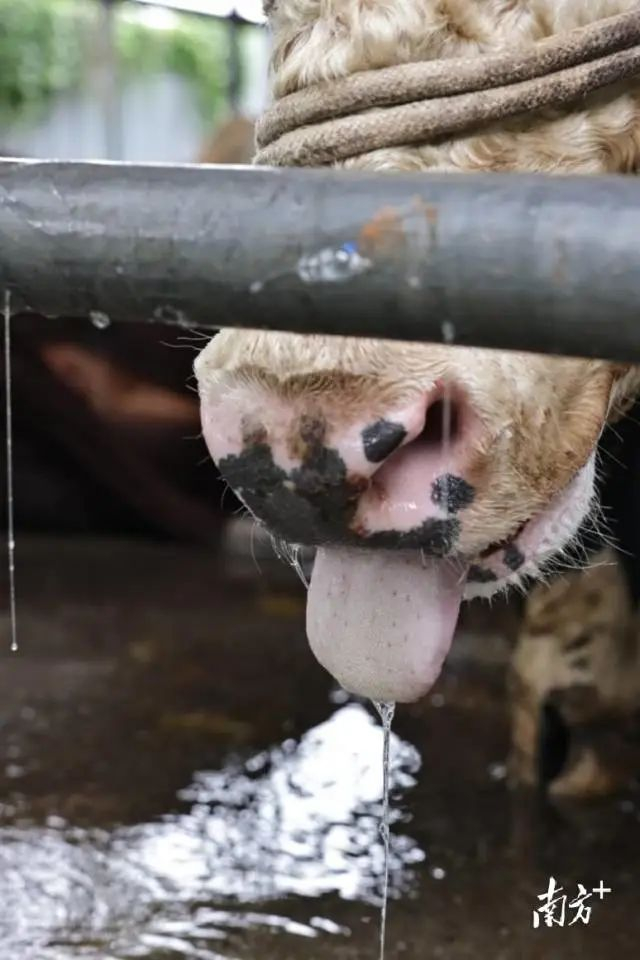 视频显示工人把牛拴在铁架上,将一根约两米长的黑色硬管直接插入牛嘴,再接上另一根软管往里注水,每头牛要注水2分钟左右。经估算,每头牛的注水量近50升,可给牛增重近百斤。工人给牛注水时,牛会前后踱步挣扎,面相难看,牛嘴不断有白沫吐出。