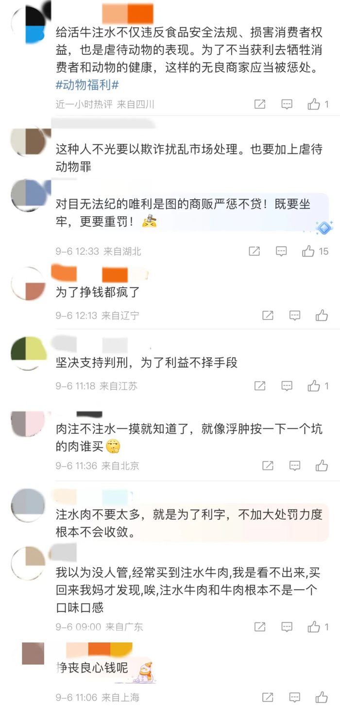 给活牛强行注水的残忍画面可谓触目惊心,这一行为挑战了人的良知底线。同时,注水牛肉也将给食品安全带来极大隐患。