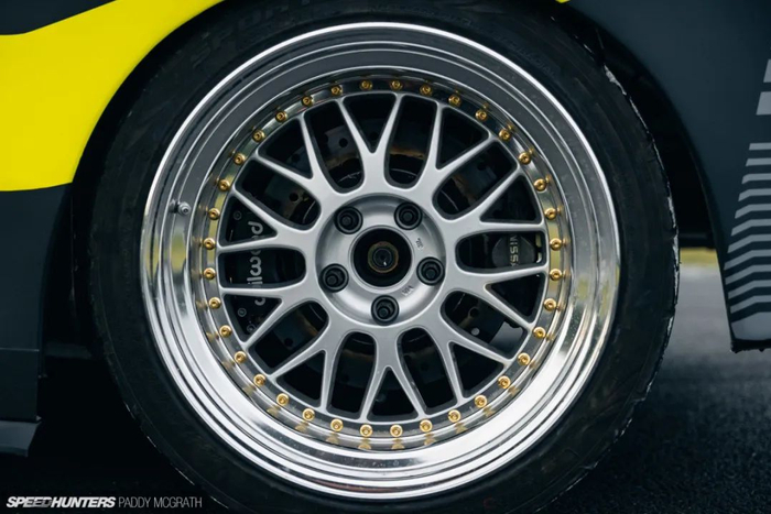 这台拉力赛车的前空气动力学套件与派克峰尾翼以及定制的四分之一前翼子板相结合,搭配18英寸的Work Meister M1轮圈,为这款车提供了相当不错的战斗姿态。
