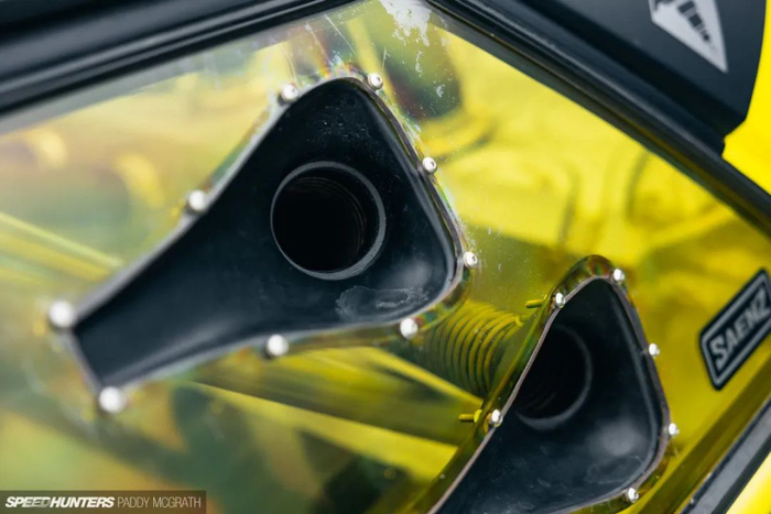 搭载的Garrett GT3582R第2代涡轮增压器安装在前部和低处,带有Turbosmart废气阀门,废气和多余的增压通过前保险杠排出。