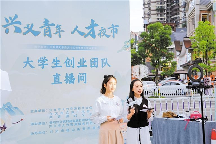 →大学生创业团队在“兴义青年 人才市场”直播间进行线上直播带岗。