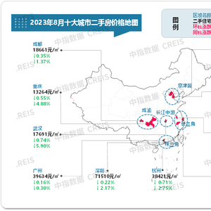 8月,楼市政策优化力度明显加大。中央层面,住建部、中国人民银行、金融监管总局推动落实首套房“认房不认贷”政策;财政部、税务总局、住建部发文,将“换房退税”政策延续至2025年底;中国人民银行、金融监管总局下调首付比例和商贷利率下限。地方层面,一线城市及武汉、郑州、重庆等二线城市已宣布执行“认房不认贷”,成都、西安、厦门、嘉兴等城市亦优化楼市政策。市场方面,部分城市二手住宅成交量有所回升,但以价换量态势仍延续,房价继续下行。中指研究院选取全国十大核心城市二手房市场作为研究对象,刻画量价时空特征,为市场参与者提供更多参考信息。