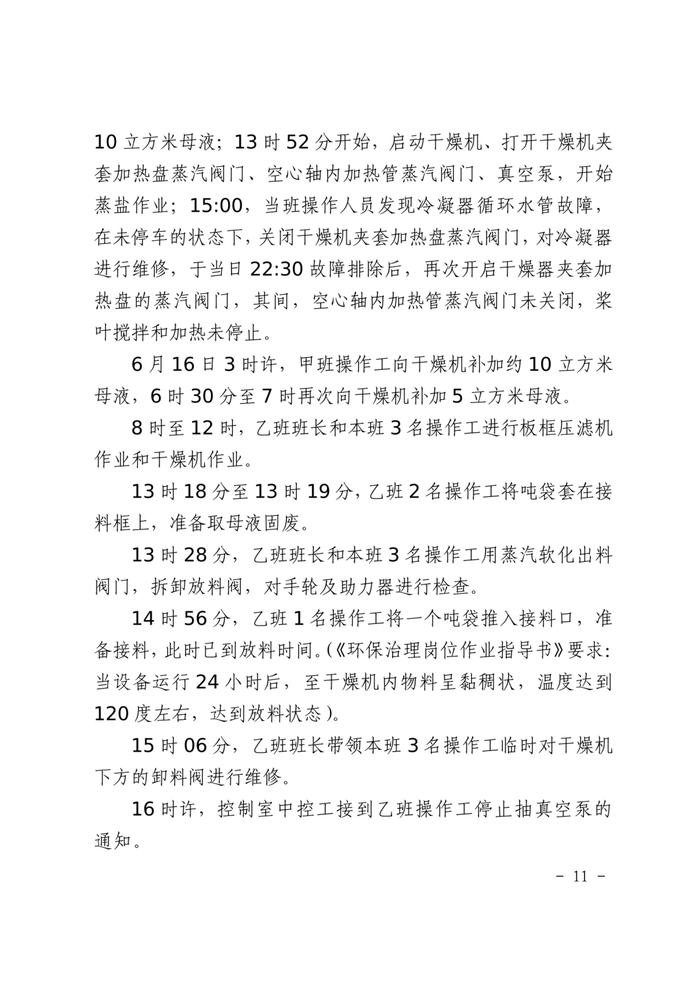 经调查,事故的直接原因为:当班人员在干燥机未停车、持续加热的情况下,对卸料阀进行维修,导致母液固废在干燥机内加热时间延长约4个小时。干燥机持续加热,内部热量难以散发、持续累积,导致母液固废所含的氯酸钠与有机物反应放热,并进一步引起有机物的分解放热,干燥机内部温度与压力急剧上升,发生爆炸并殉爆了车间现场堆放的其他废料。