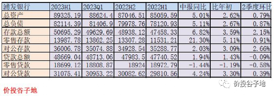根据2023年中报,浦发银行总资产89325.19亿,同比增5.01%。其中贷款总额48669.04亿同比增长1.94%。总负债82114.39亿,同比增速5.11%。其中,存款50695.29亿,同比增6.82%。浦发银行的规模扩张依旧很弱,2季度环比增长0.79%,半年报同比增长只有5.01%符合我前面说的休克疗法的特征。其中,零售贷款表现更是糟糕,连续两个季度环比负增长,可见浦发的零售业务基础何等薄弱。更多的数据参考表3: