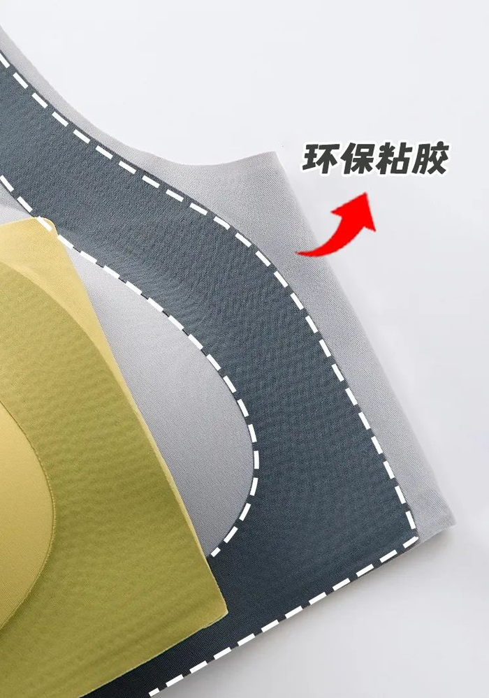 比如,整件内衣是用环保点胶粘合的,没有凸起的线头、缝合处,上身毫无异物感。