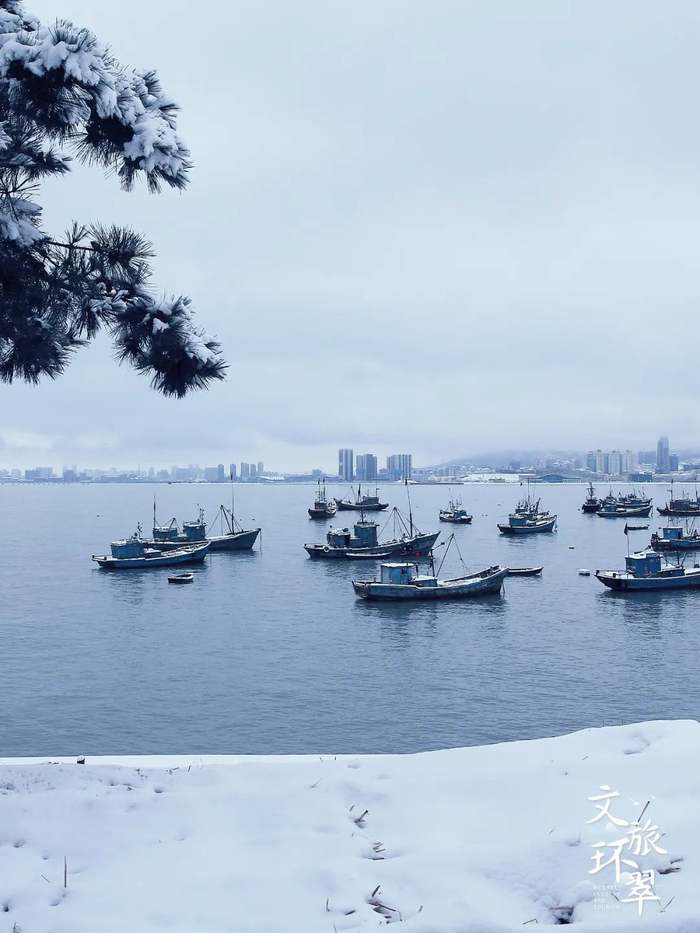 总是思念着那段雪落人间的时光,银装素裹与红墙古建、冰封千里与倒悬冰棱交……有雪又有海的威海,像极了童话里的冰雪王国。