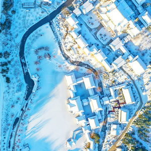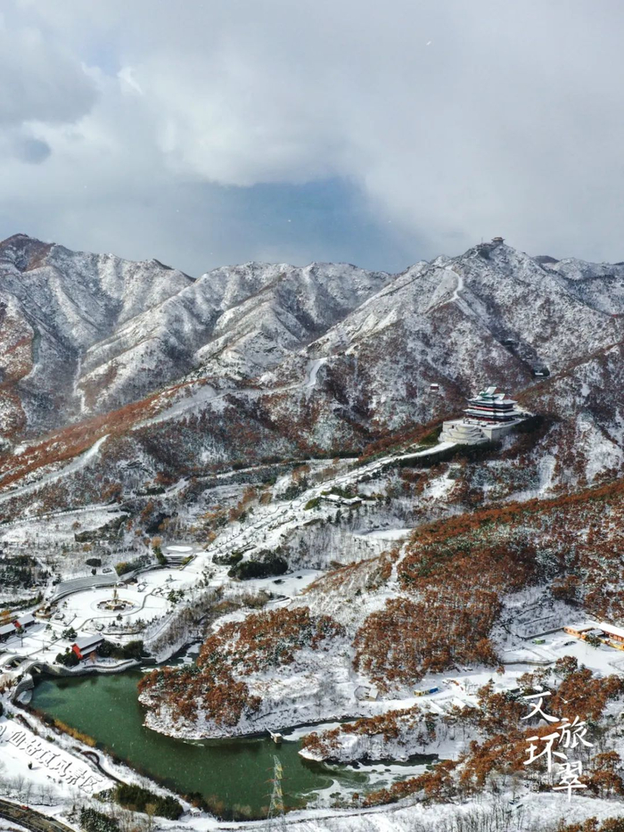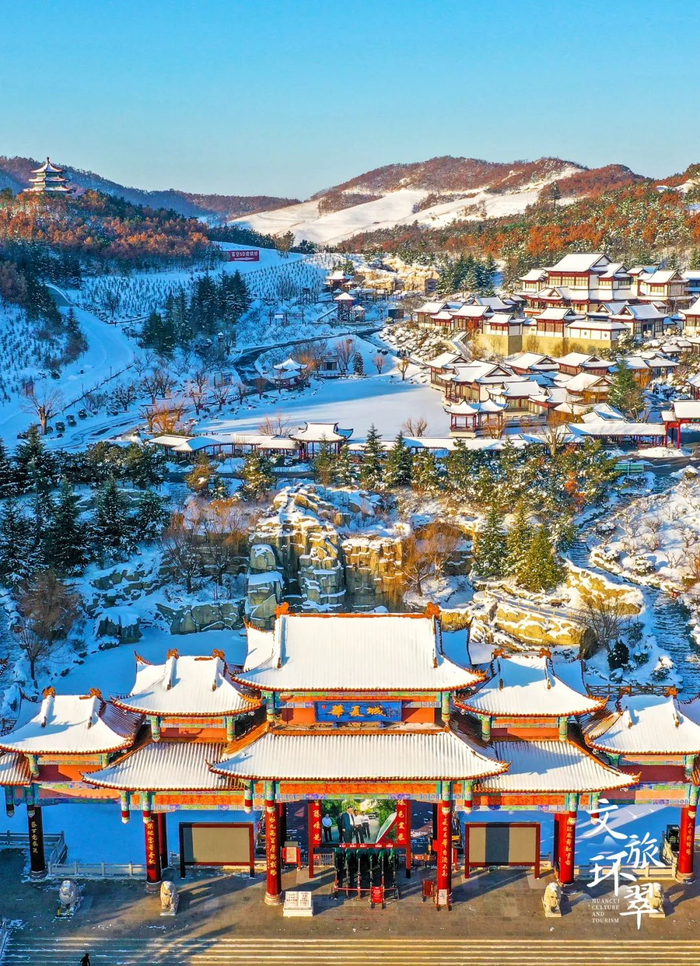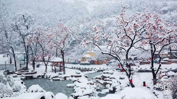 冬天大雪覆盖华夏城的远山近水,落在中式建筑上,白雪茫茫间夹杂着点点朱红、片片苍翠、静静伫立天地间,仿佛置身于唯美浪漫的油画世界。