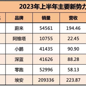 蔚来预期,2023年第三季度将交付5.5万辆-5.7万辆,同比增长74%-80.3%;营收指引为189亿元-195.2亿元,同比增长45.3%-50.1%。